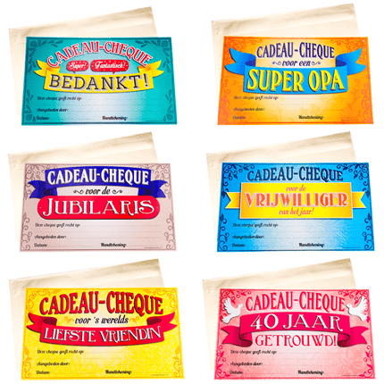 Cadeaubonnen: zeer populair voor hun flexibiliteit en persoonlijke touch, biedt Partywinkel cadeaubonnen voor thema's zoals 'nieuwe woning' of 'cadeau-cheque voor 's werelds beste oom'. Deze bonnen kunnen aangepast worden om perfect aan te sluiten bij de gelegenheid of de voorkeuren van de ontvanger.
