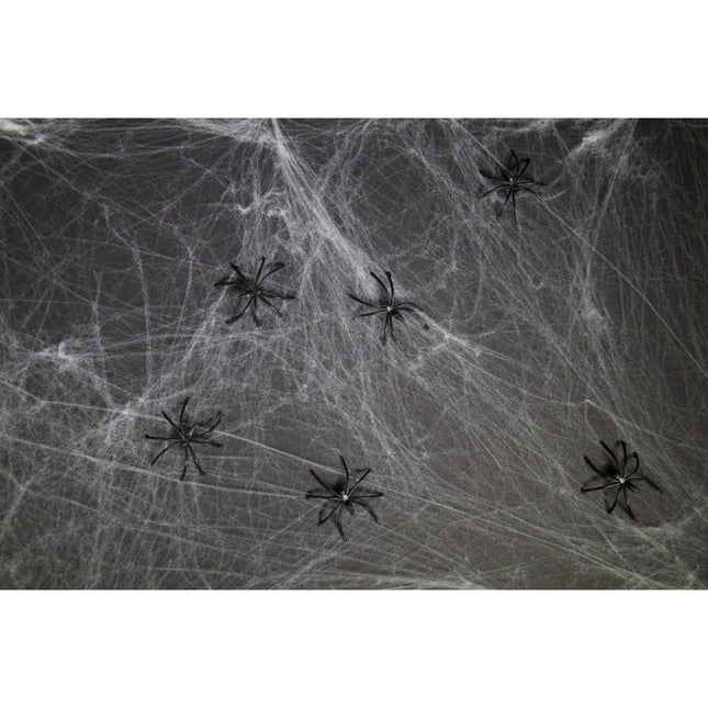 Van welk materiaal zijn de Halloween spinnen en spinnenwebben op Partywinkel?
