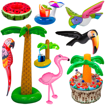 Een opblaasbare palmboom? Aap? Of misschien een banaan? Je kunt het zo gek niet bedenken en wij hebben het bij de Partywinkel.nl. Zorg er met opblaasartikelen voor dat je feestje net iets meer sfeer krijgt. Maak gebruik van verschillende zwembanden, opblaasbare dieren of sandalen. Opblaasbare Hawaii decoraties zorgen voor activiteiten. Je zou er bijvoorbeeld voor kunnen kiezen om een strandbal te nemen waarmee de gasten kunnen spelen. Bij een Hawaii geest zijn opblaasbare artikelen vrijwel onmisbaar, want zoiets als een opblaas gitaar kan toch eigenlijk niet missen op je Hawaii feest?