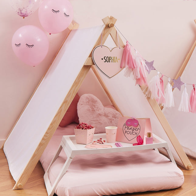 Tentjes: voor een unieke draai aan je Pamper Party, bieden wij ook schattige tentjes aan. Deze tentjes zijn niet alleen een geweldige toevoeging aan de decoratie, maar bieden ook een gezellige, privéplek voor gasten om te ontspannen en te genieten van hun spa-behandelingen. Ze zijn bijzonder populair bij kinderfeestjes, waar ze kunnen dienen als een speciale plek voor verhalen of rustige activiteiten.
