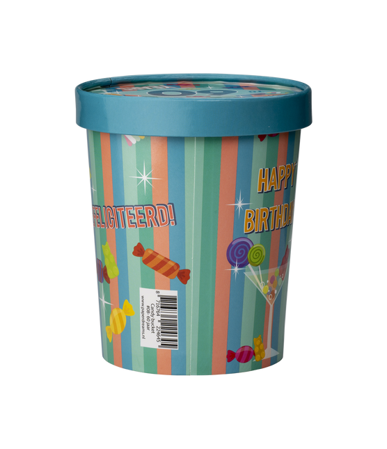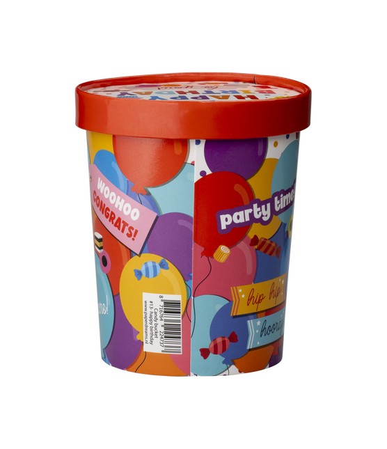 Bij Partywinkel zijn onze snoepbakjes gemaakt van hoogwaardig karton. Dit materiaal is stevig genoeg om een verscheidenheid aan snoepjes te dragen, maar toch licht en makkelijk te hanteren. Kartonnen snoepbakjes zijn milieuvriendelijker dan plastic alternatieven en kunnen na gebruik gemakkelijk worden gerecycled. Het gebruik van kartonnen snoepbakjes biedt ook een aantal praktische voordelen. Ze zijn eenvoudig te monteren en kunnen plat worden opgeborgen, wat handig is voor transport en opslag. Daarnaast zijn ze sterk genoeg om een breed scala aan snoepjes te bevatten, van lichte suikerspin tot zwaardere chocolaatjes.