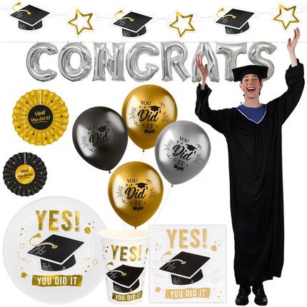 Geslaagd versiering: of het nu gaat om het afronden van een studie of een ander belangrijk examen, het behalen van een mijlpaal verdient speciale erkenning. Ons aanbod in geslaagd versiering varieert van imposante gevelvlaggen tot thematische ballonnen en decoraties voor deuren en ramen, die de prestaties van de geslaagde in de schijnwerpers zetten.
