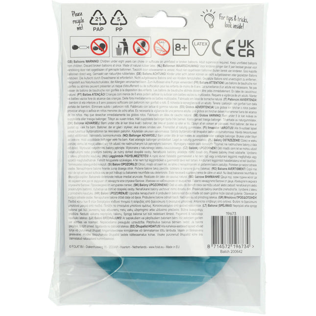 Bij Partywinkel streven we ernaar om elk feest een uniek tintje te geven, en wat is er beter geschikt dan betoverende turquoise latex ballonnen? Deze levendige en exotische decoraties voegen een speelse charme toe aan elke gelegenheid, of het nu gaat om een tropisch themafeest, een zwembadfeest, een zomerse picknick of een verjaardagsviering. Onze turquoise latex ballonnen zijn van uitstekende kwaliteit en brengen een frisse en energieke sfeer naar elke feestelijke setting. Met hun levendige kleur en vrolijke uitstraling zullen ze zeker de aandacht trekken en een blijvende indruk achterlaten op je gasten.