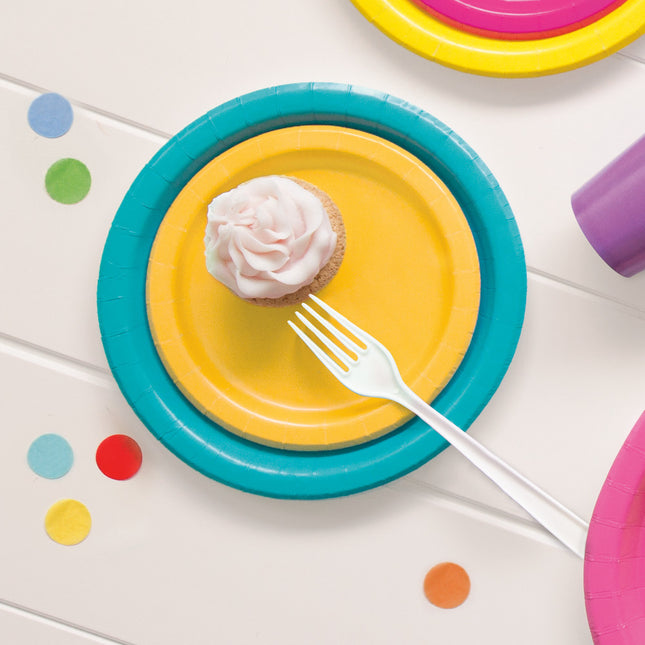 Verjaardagsfeesten: turquoise wegwerpborden zijn perfect voor verjaardagsfeesten, vooral als je een kleurrijk en levendig feestthema wilt creëren.