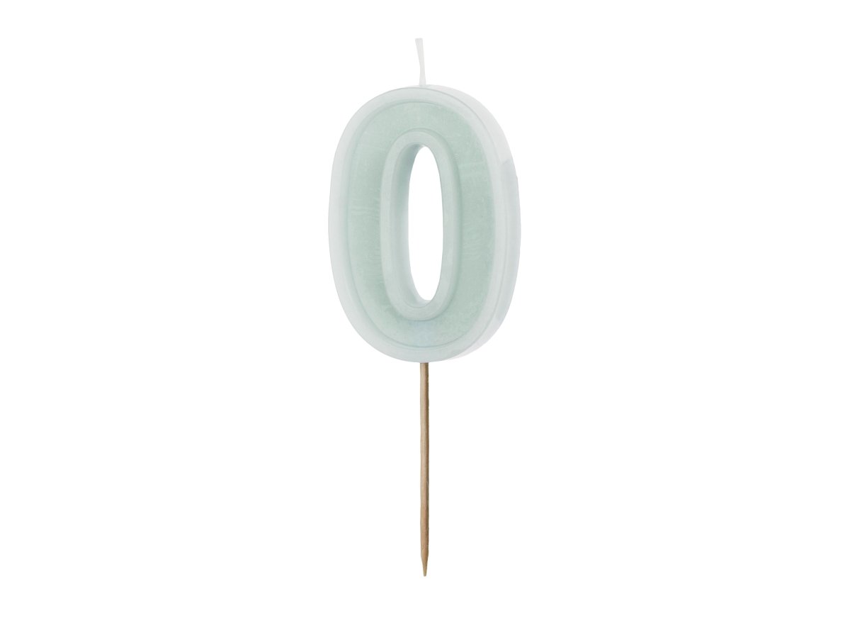 Verjaardagskaars Cijfer 0 in licht mint kleur.