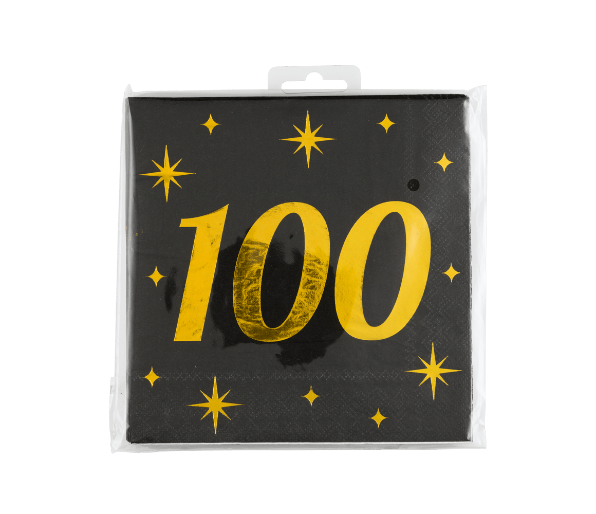 100 Jaar Servetten Zwart Goud 19cm 16st