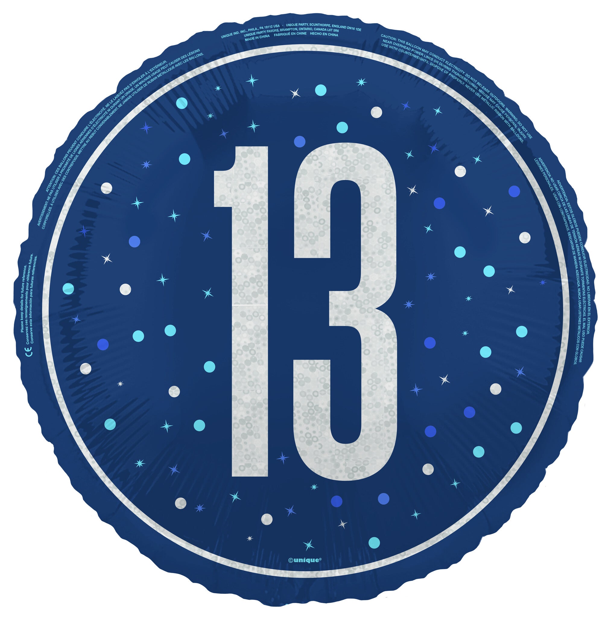 13 Jaar Helium Ballon Blauw Leeg 45cm