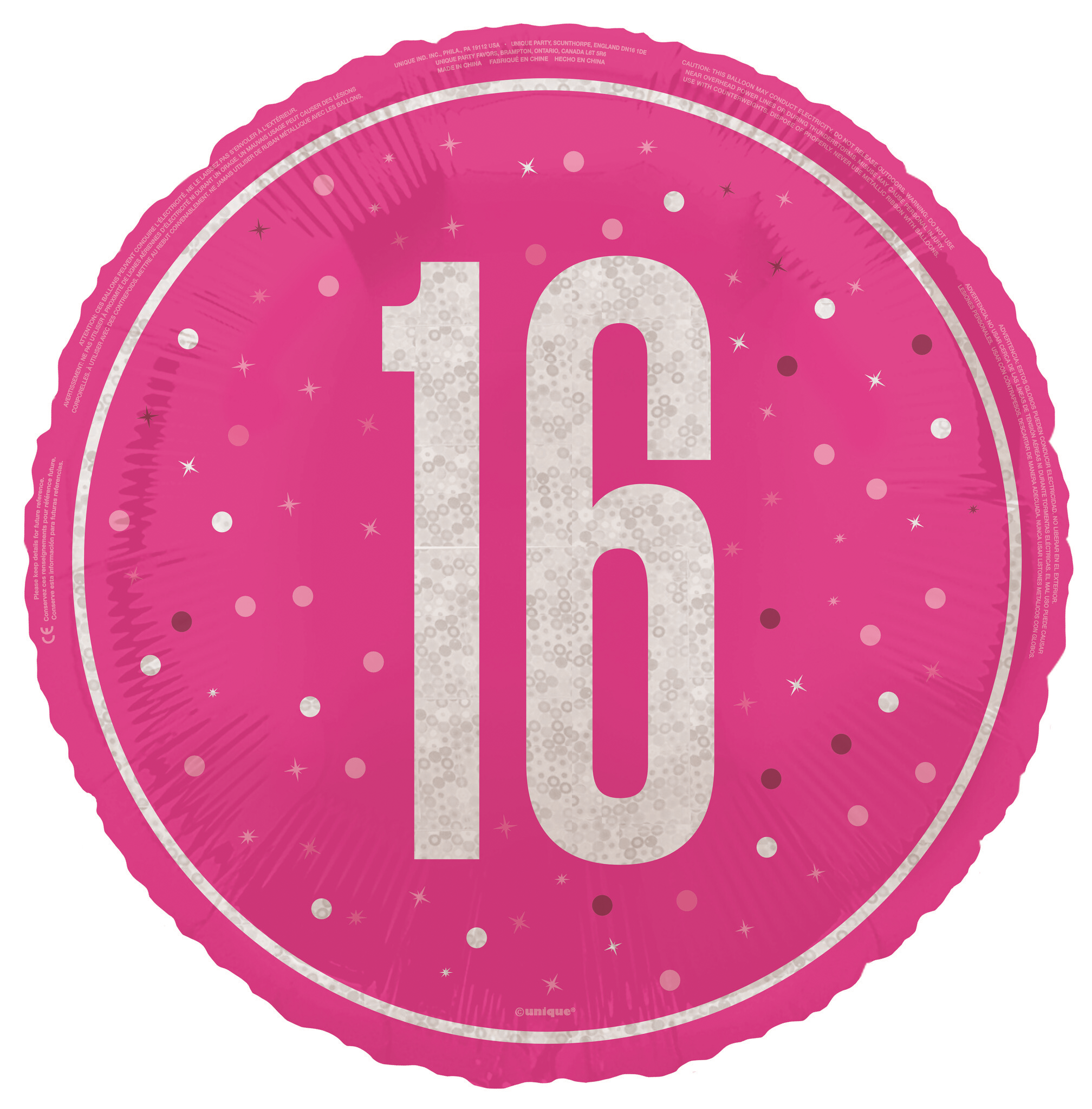 16 Jaar Helium Ballon Roze Leeg 45cm
