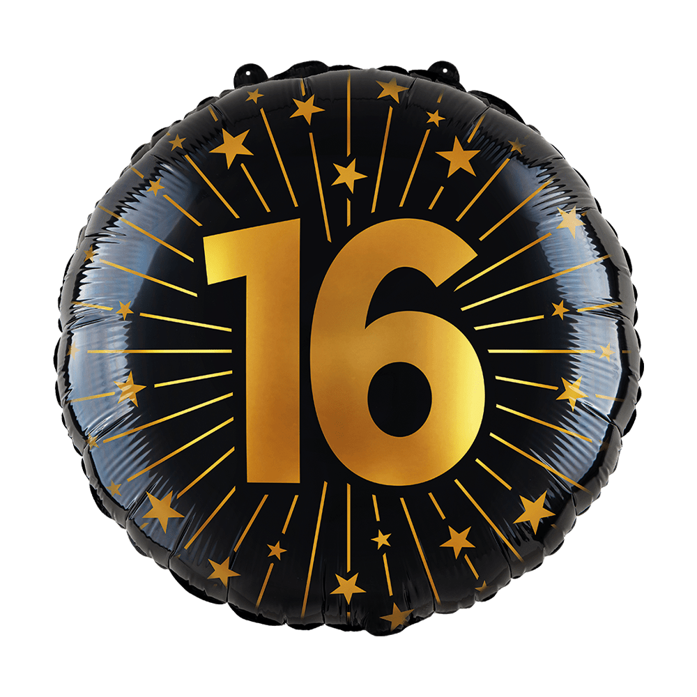 16 Jaar Helium Ballon Zwart Goud Leeg 45cm