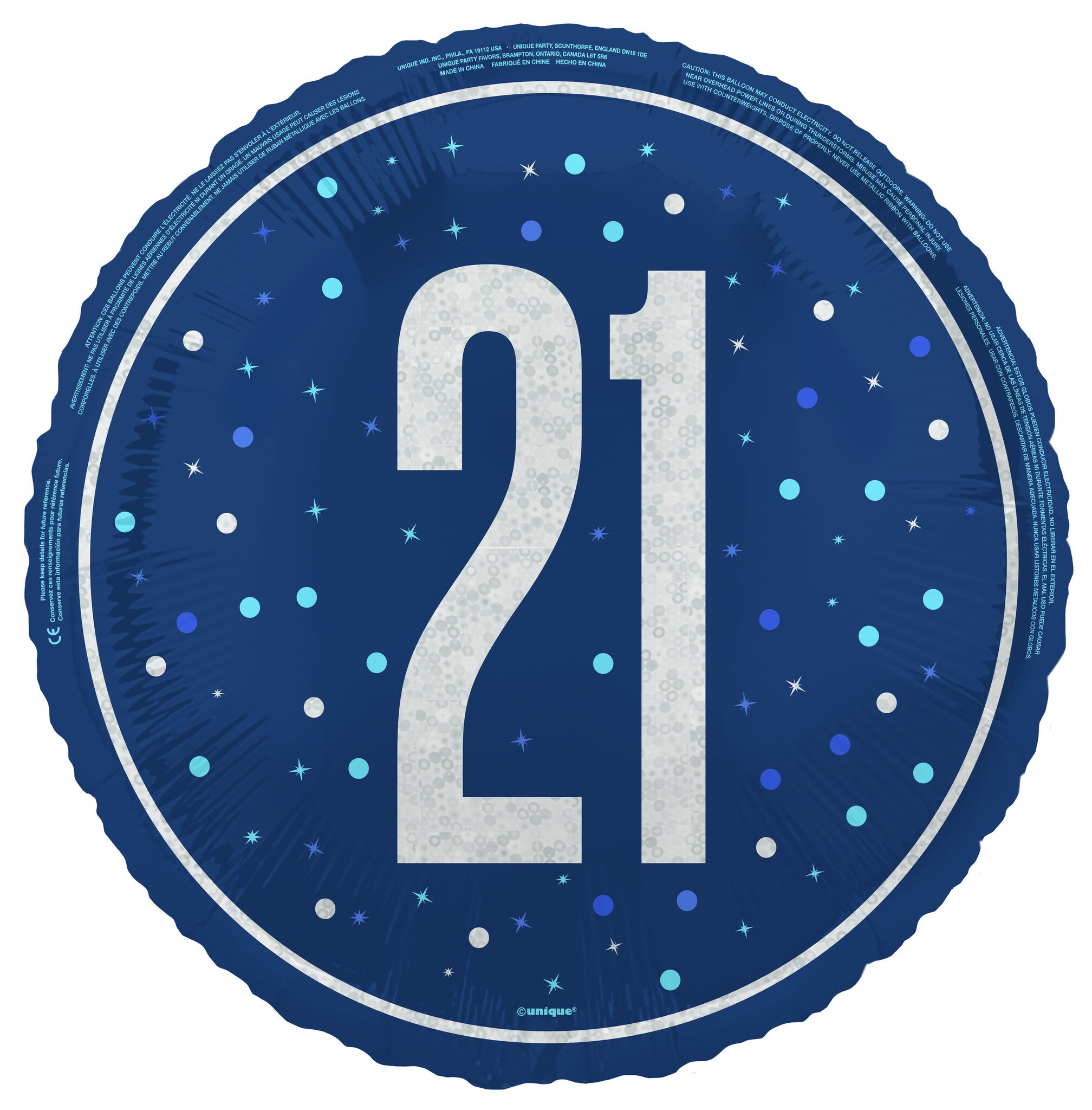 21 Jaar Helium Ballon Blauw Leeg 45cm