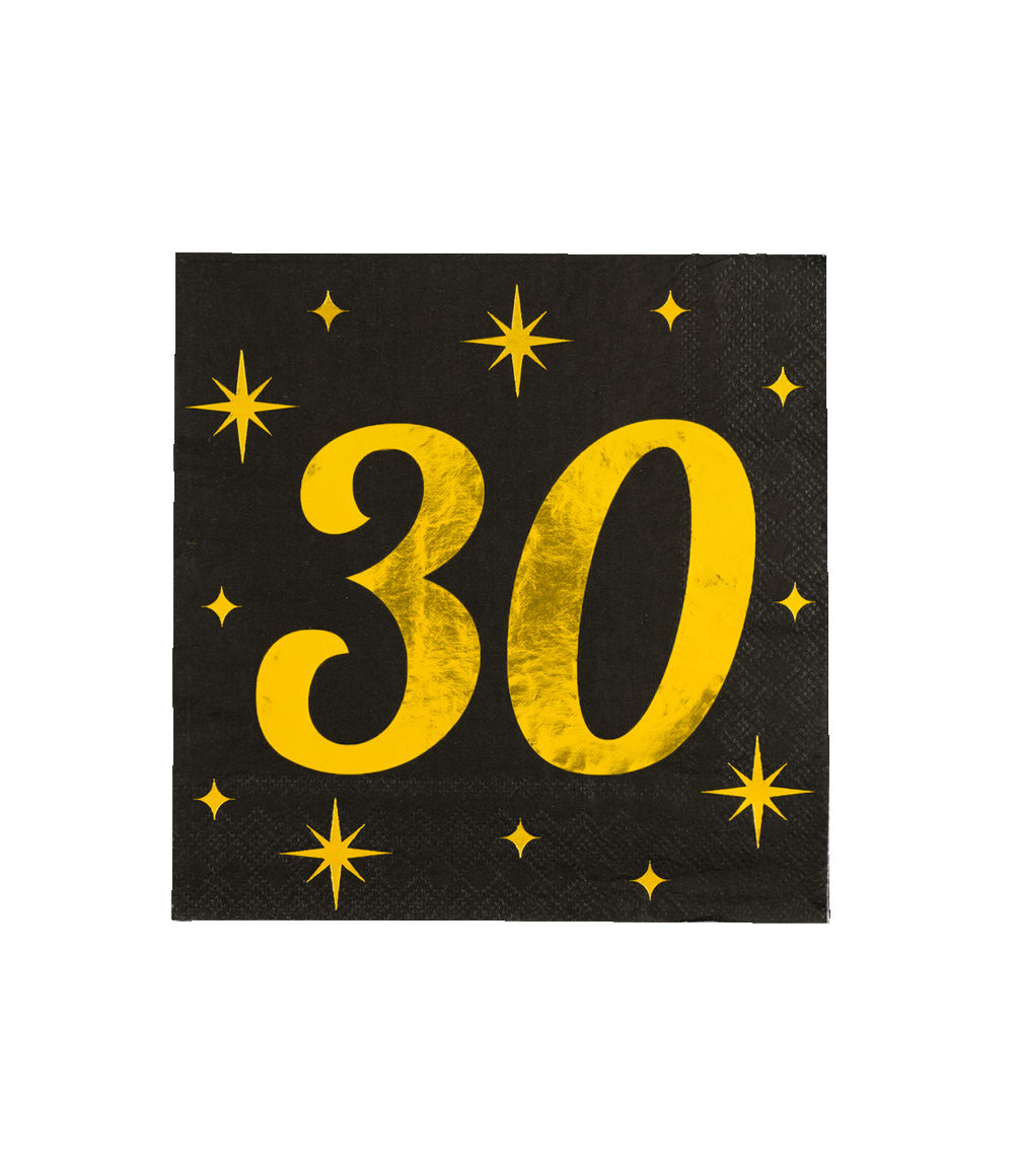30 Jaar Servetten Zwart Goud 19cm 16st