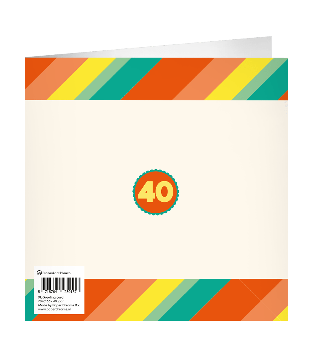 XL Greeting cards - 40 jaar is de perfecte kaart om te versturen als er iemand 40 wordt. Niet alleen het leuke design zal opvallen bij de ontvanger, ook de grote afmeting van ongeveer 23 x 23 centimeter is gewoon niet te missen!
