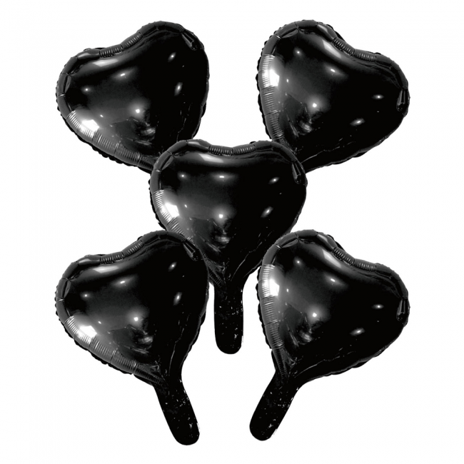 5 Folieballonnen hart met papieren rietje 9" zwart