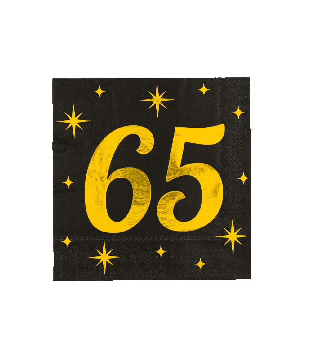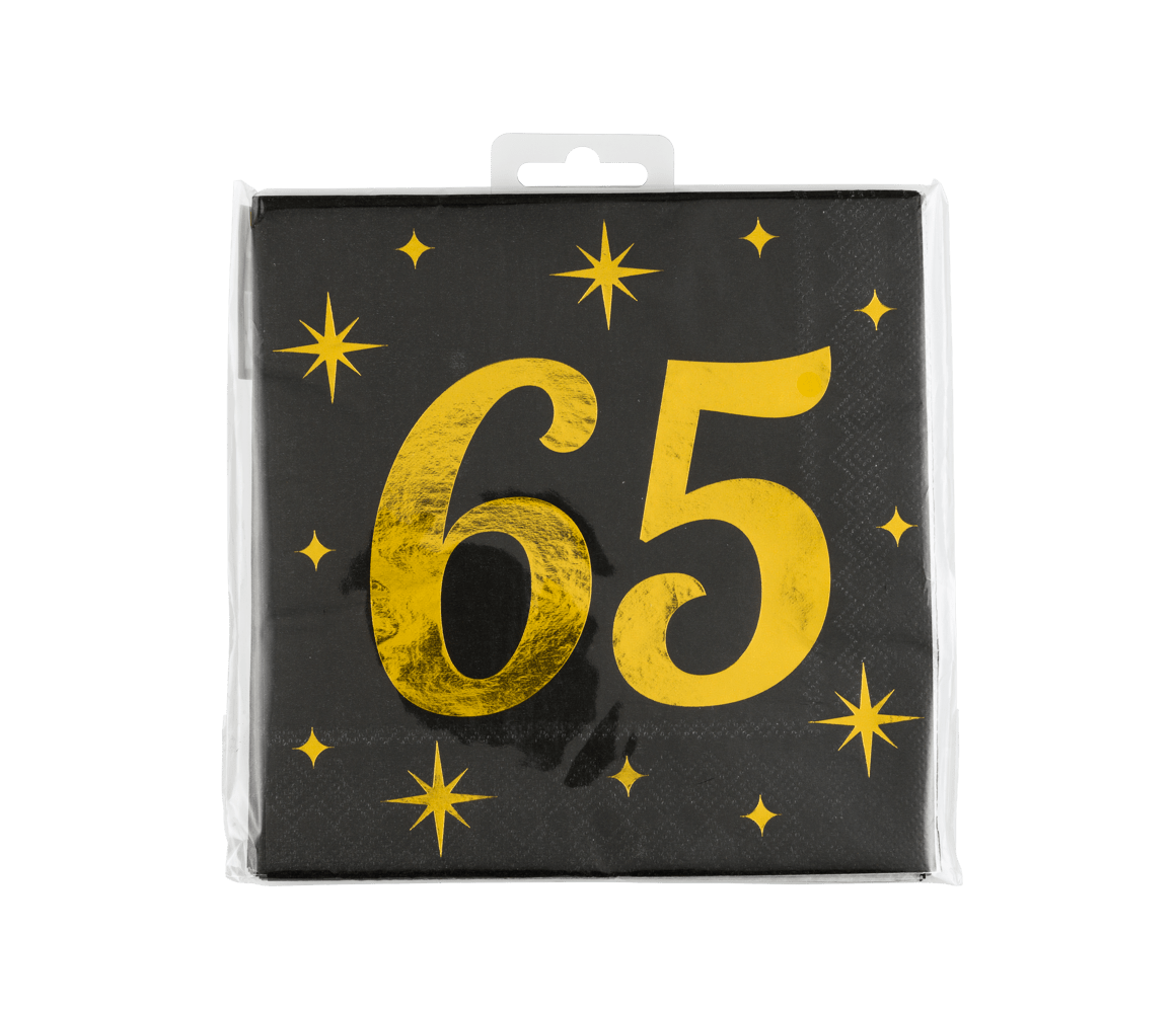 65 Jaar Servetten Zwart Goud 19cm 16st