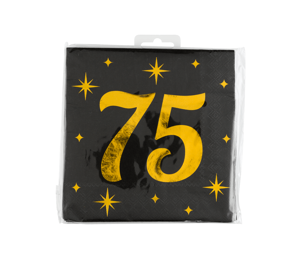 75 Jaar Servetten Zwart Goud 19cm 16st