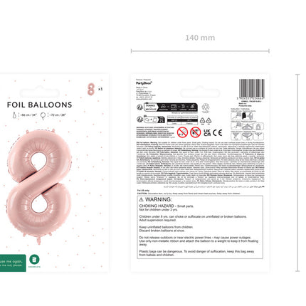 8 Jaar Cijfer Ballon Lichtroze Leeg 72cm