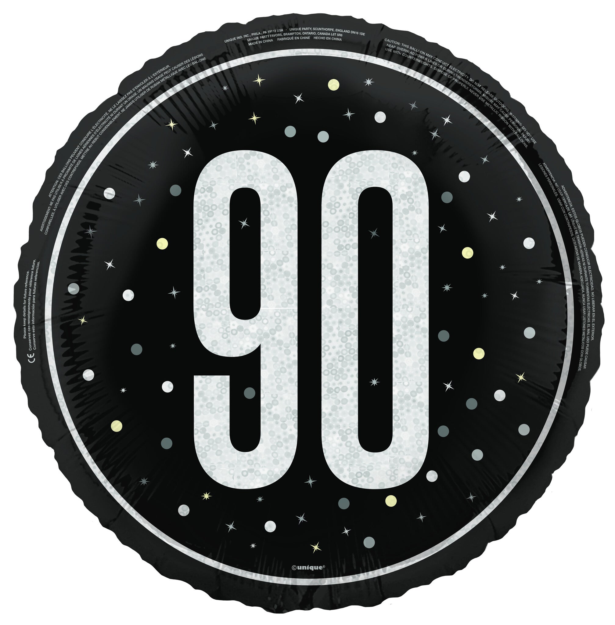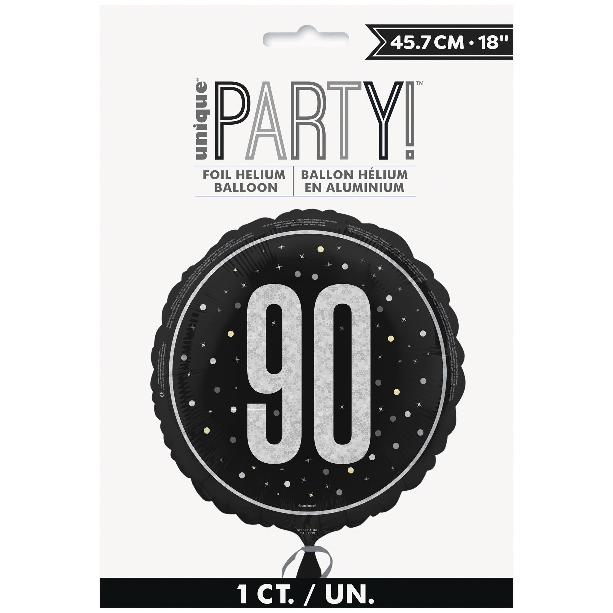 90 Jaar Helium Ballon Zwart Leeg 45cm