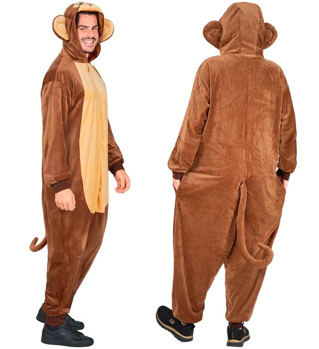 Met deze pluche aap onesie wordt elk verkleedmoment extra gezellig en grappig.