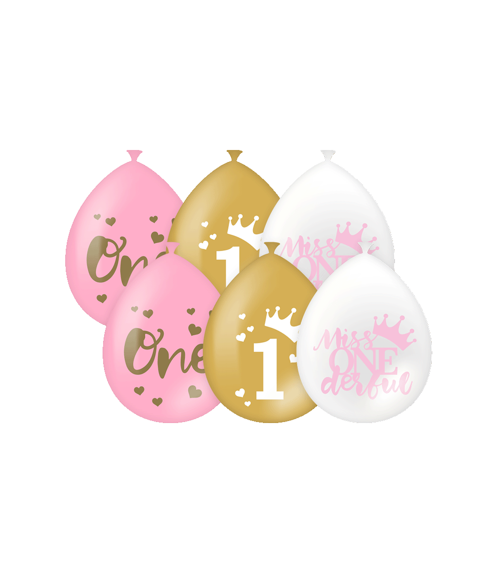 Ballonnen 1 Jaar Meisje 30cm 6st