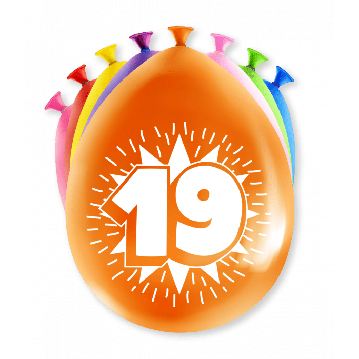Ballonnen 19 Jaar Meerkleurig 30cm 8st