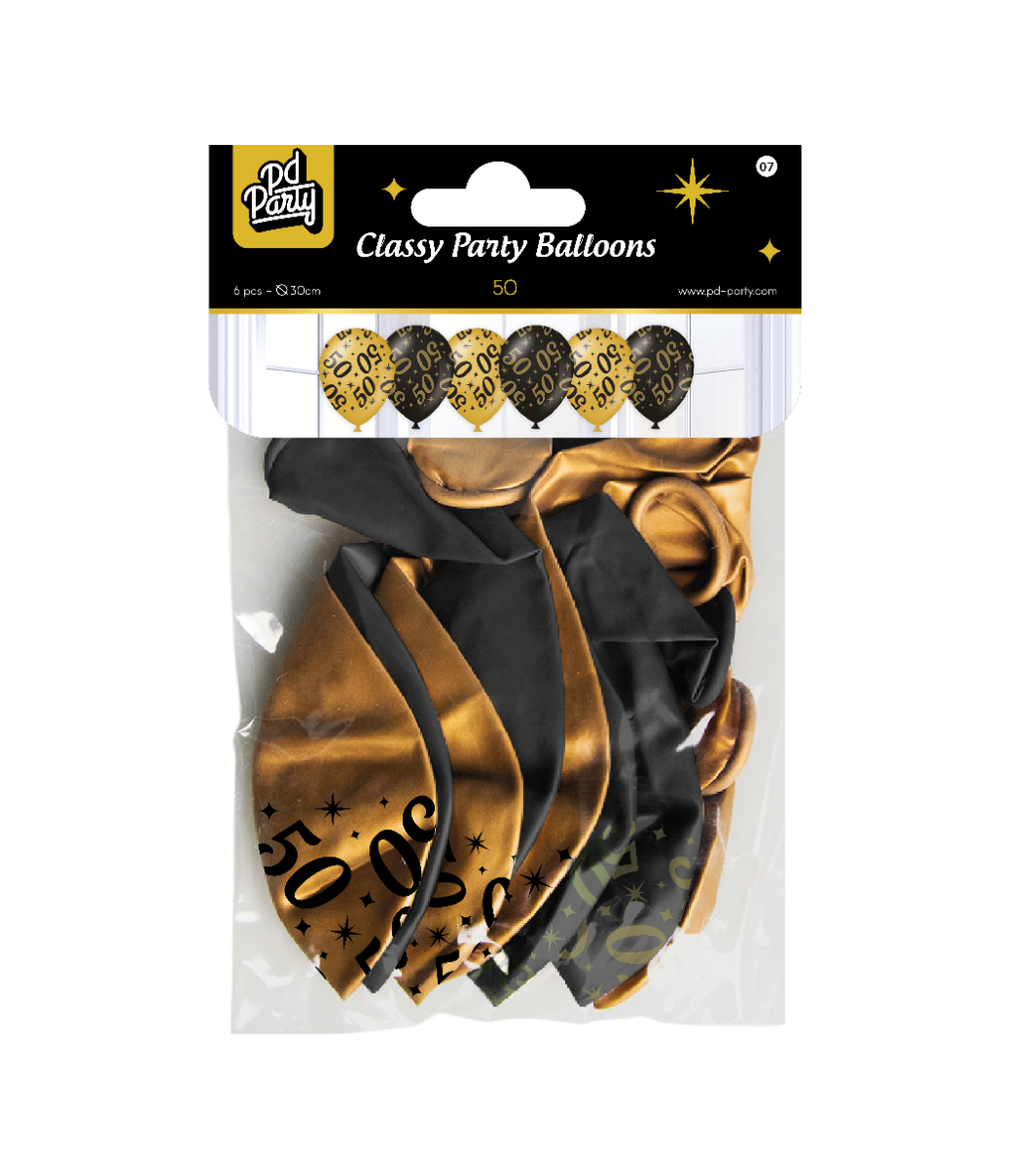 Ballonnen 50 Jaar Goud Zwart 30cm 6st