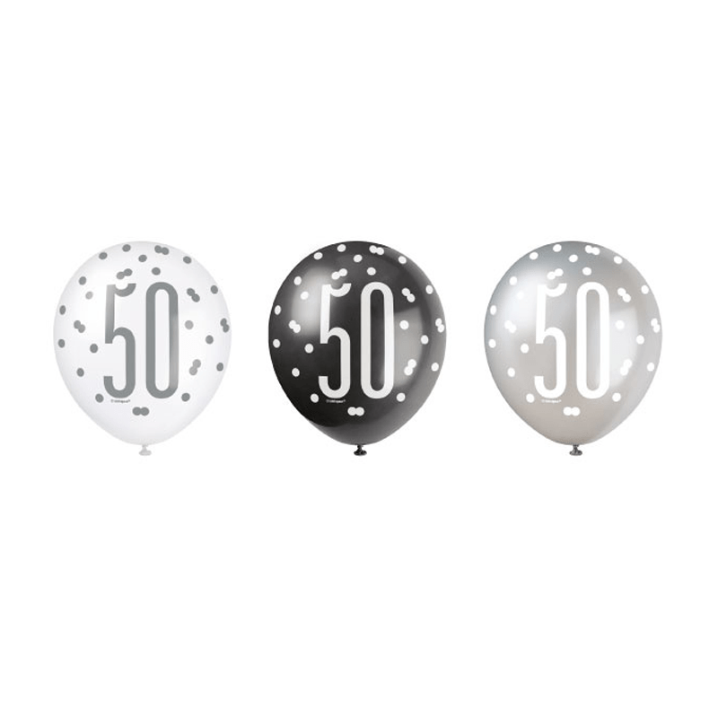 Ballonnen 50 Jaar Stippen Zwart 30cm 6st