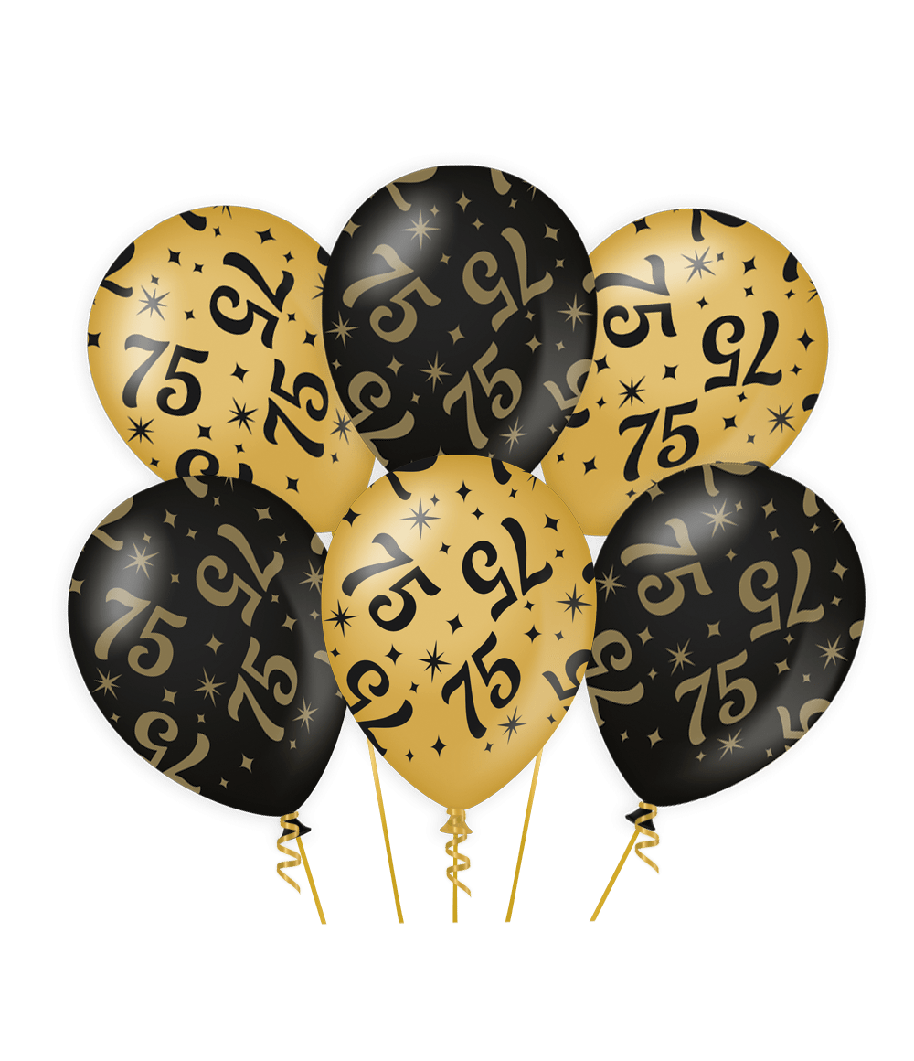 Ballonnen 75 Jaar Goud Zwart 30cm 6st