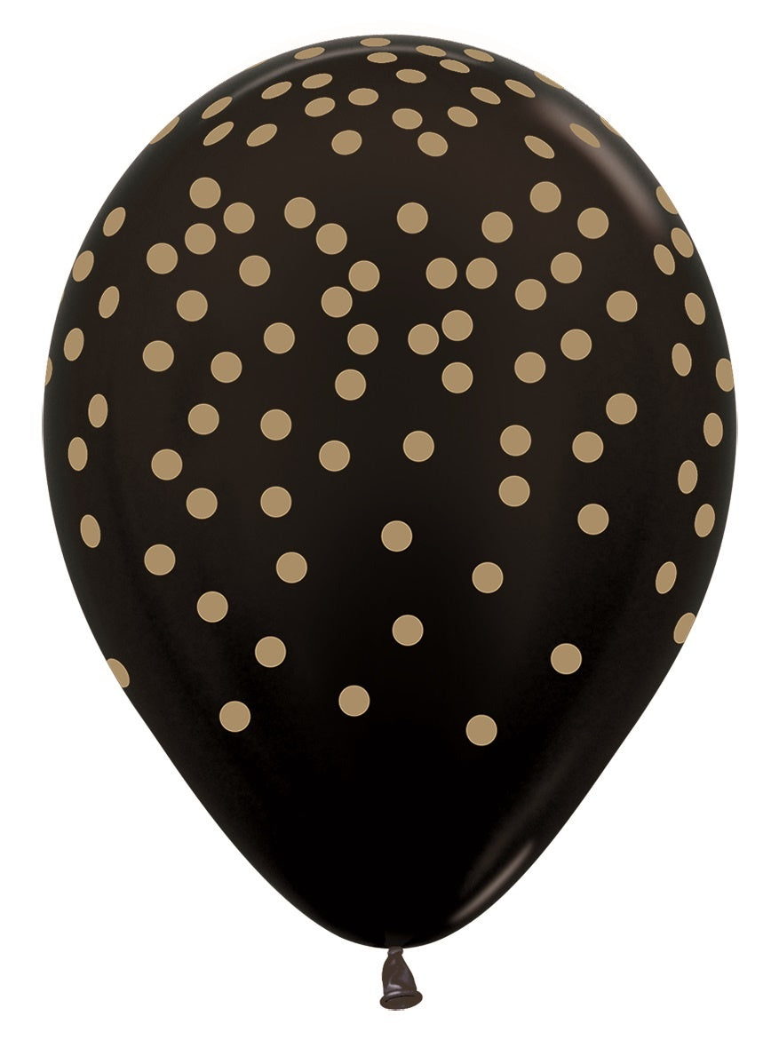 Ballonnen Confetti Gold Print Metallic Black 30cm 25st