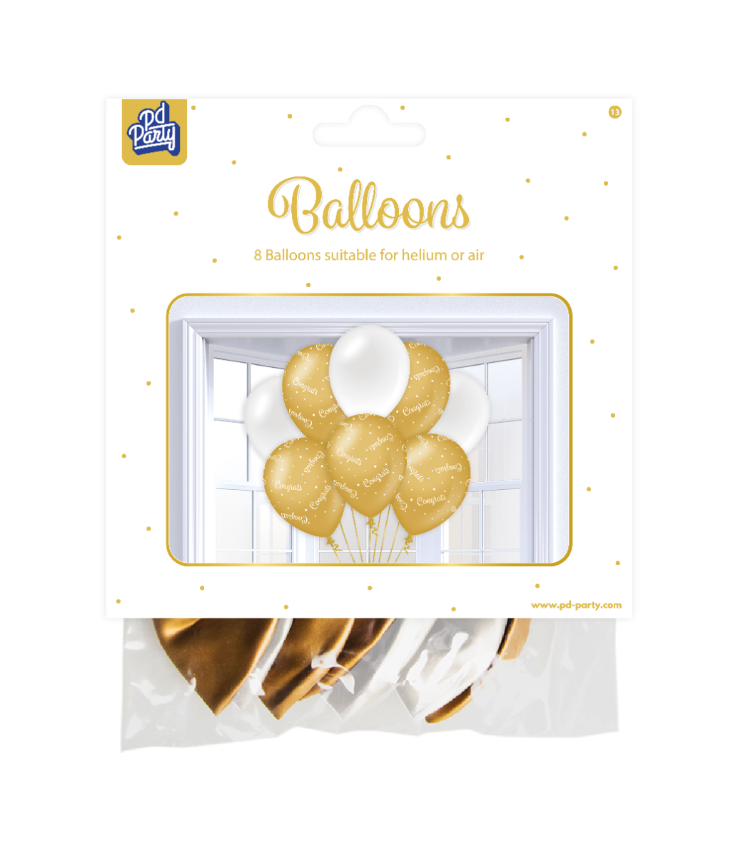 Ballonnen Congrats Goud Wit 30cm 6st