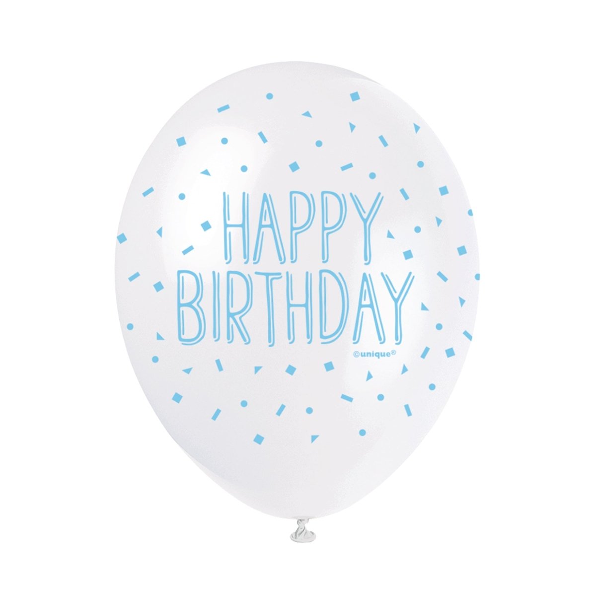 Ballonnen Happy Birthday Confetti Blauw 30cm 5st