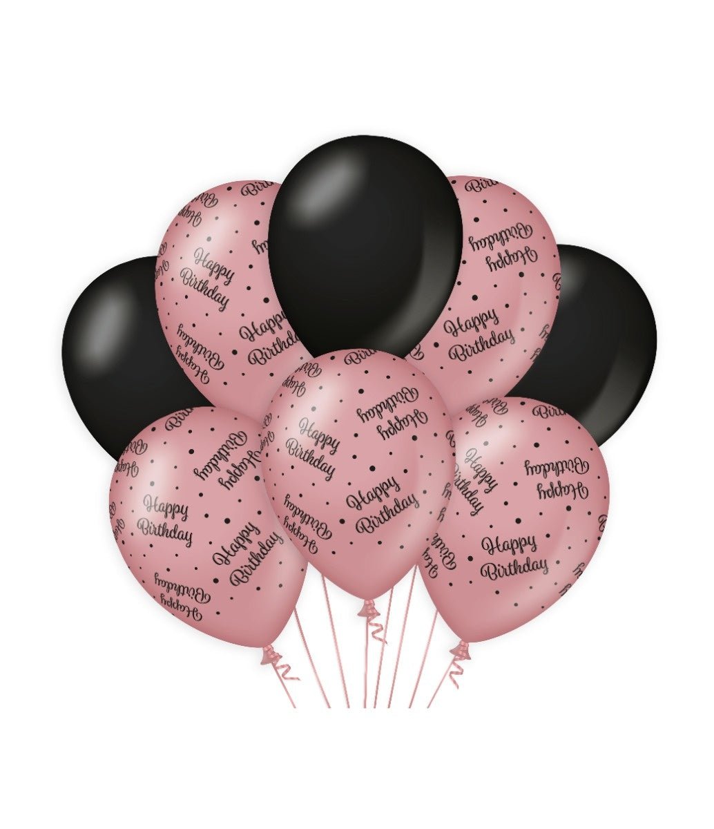 Ballonnen Happy Birthday Rose Zwart 30cm 8st