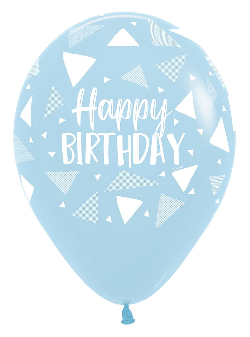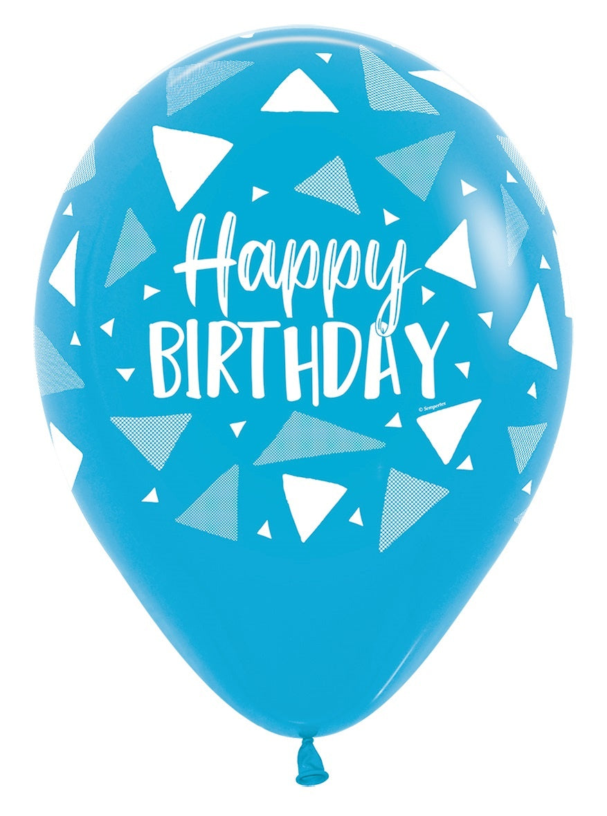 Ballonnen Happy Birthday Triangles Blue Mix 30cm 25st
