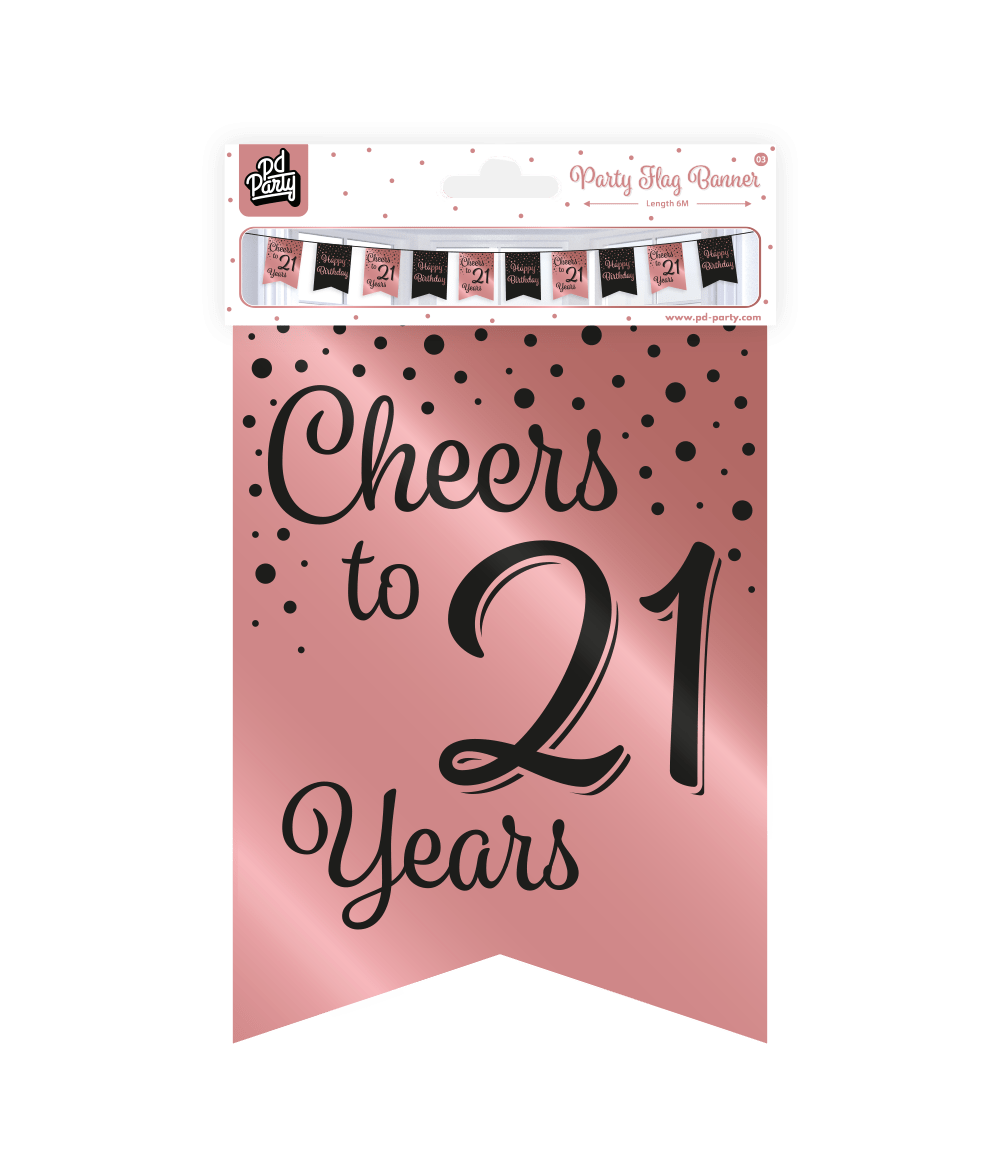Banner 21 Jaar Roze Zwart 6m