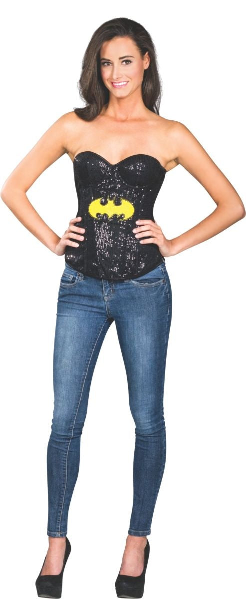 Zie eruit als de meest supersexyste heldin die Batman ooit heeft gezien, gekleed in dit nauwsluitende, volledig zwarte korsettopje met lovertjes en het felgele Batman-embleem op de voorkant. Dus gooi die extra grote cape uit, trek die grote laarzen uit en trek het Batgirl-paillettencorset voor dames aan en beleef een leuke tijd die alleen een superheldin kan hebben. Inclusief: Rits aan de zijkant, Vetersluiting aan de achterkant voor verstelbaarheid, A