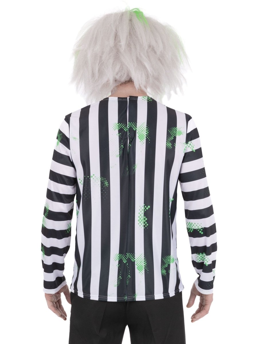 Deze Beetlejuice top voor volwassenen biedt een direct herkenbare look en kan eenvoudig gecombineerd worden met andere Beetlejuice-kostuumonderdelen voor een complete en opvallende outfit.