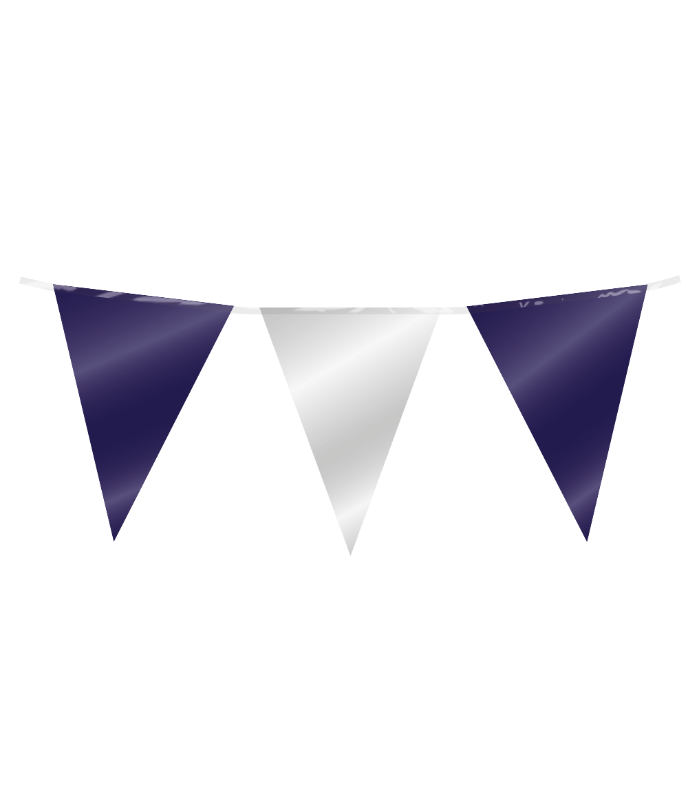 Geef je feestje een feestelijke uitstraling met deze elegante vlaggenlijn in donkerblauw en zilver. De vlaggen zijn bedrukt aan beide zijden en zorgen voor een stijlvolle decoratie op verjaardagen, jubileums of andere speciale gelegenheden.