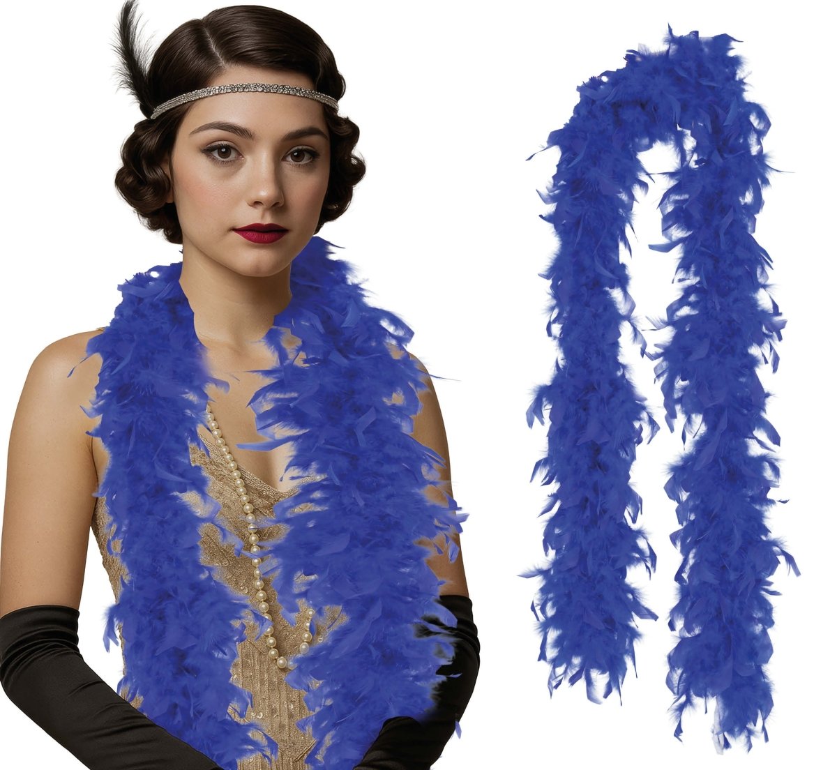 Voeg een vleugje kleur en elegantie toe aan je outfit met deze blauwe verenboa. Ideaal voor feestjes, thema-avonden, carnaval of toneeloptredens. De boa is licht van gewicht, voelt zacht aan en zorgt direct voor een opvallende en feestelijke uitstraling.
