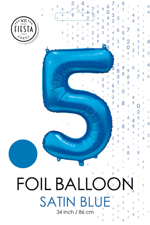 Blauwe Cijfer Ballon 5 Jaar Glans 86cm