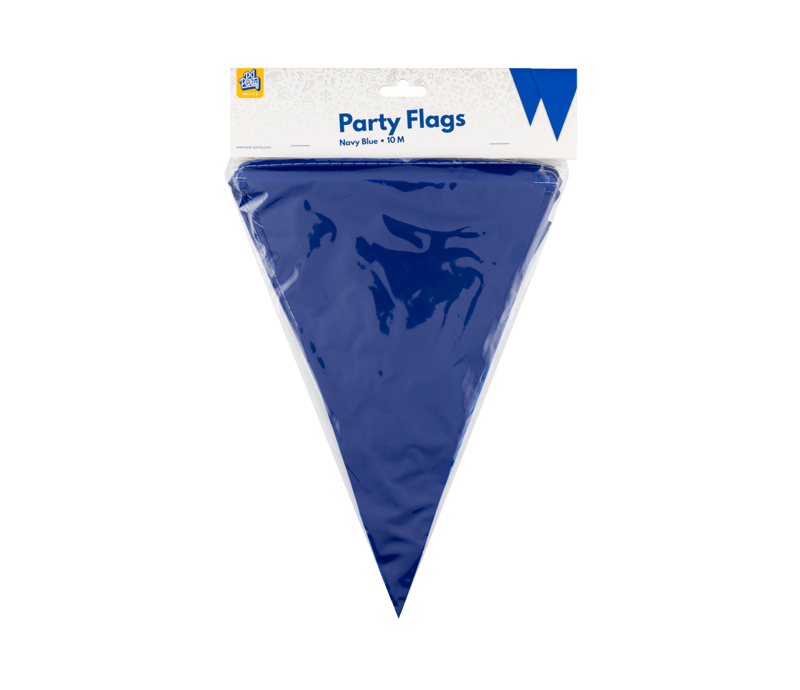 Met de party flags PE - navy blue uit de Basic collectie van Paper Dreams haal je een kwalitatieve blauwe vlaggenlijn in huis voor een scherpe prijs. De vlaggenlijn is 10 meter lang. De vlaggetjes zijn gemaakt van Polyetheen (PE) en zijn gemakkelijk op te hangen.