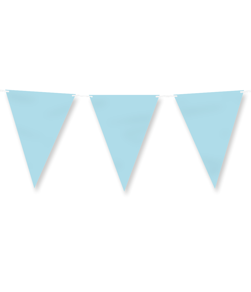 Paper flagline - Pastel blue is de perfecte vlaggenlijn op een feestje waar de kleur pastel blauw het thema is. Deze papieren vlaggenlijn heeft een subtiele lengte van 6 meter en past perfect bij de overige pastel blauwkleurige artikelen zoals confetti, tafelkleden, bordjes, bekertjes, servetten en snackboxes. Presenteer deze items bij elkaar, zodat het voor de klant direct duidelijk is waar deze collectie uit bestaat. De vlaggetjes zijn van papier, wat het tot een milieuvriendelijke keuze maakt!