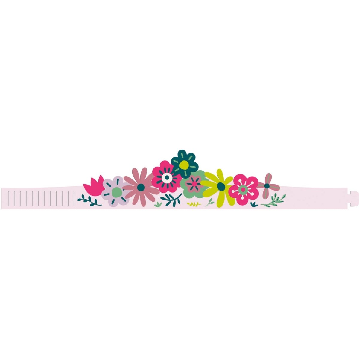 Vrolijke bloemen! Kroontjes - Fabulous Fairy - 6 stuks. Inhoud: 6 papieren kroontjes. Bijvoorbeeld te gebruiken tijdens de volgende feestgelegenheid/feestgelegenheden: Kinderfeestje, Verjaardag, Themafeest. Lichtroze papieren kroontjes met vrolijk gekleurde bloemen. De kroontjes zijn ongeveer 10 cm hoog en 60 cm lang. De kroontjes kunnen gemakkelijk op maat worden vastgezet. Deze kroontjes horen bij de Fabulous Fairy collectie van Folat. Dit artikel is gemaakt van papier.