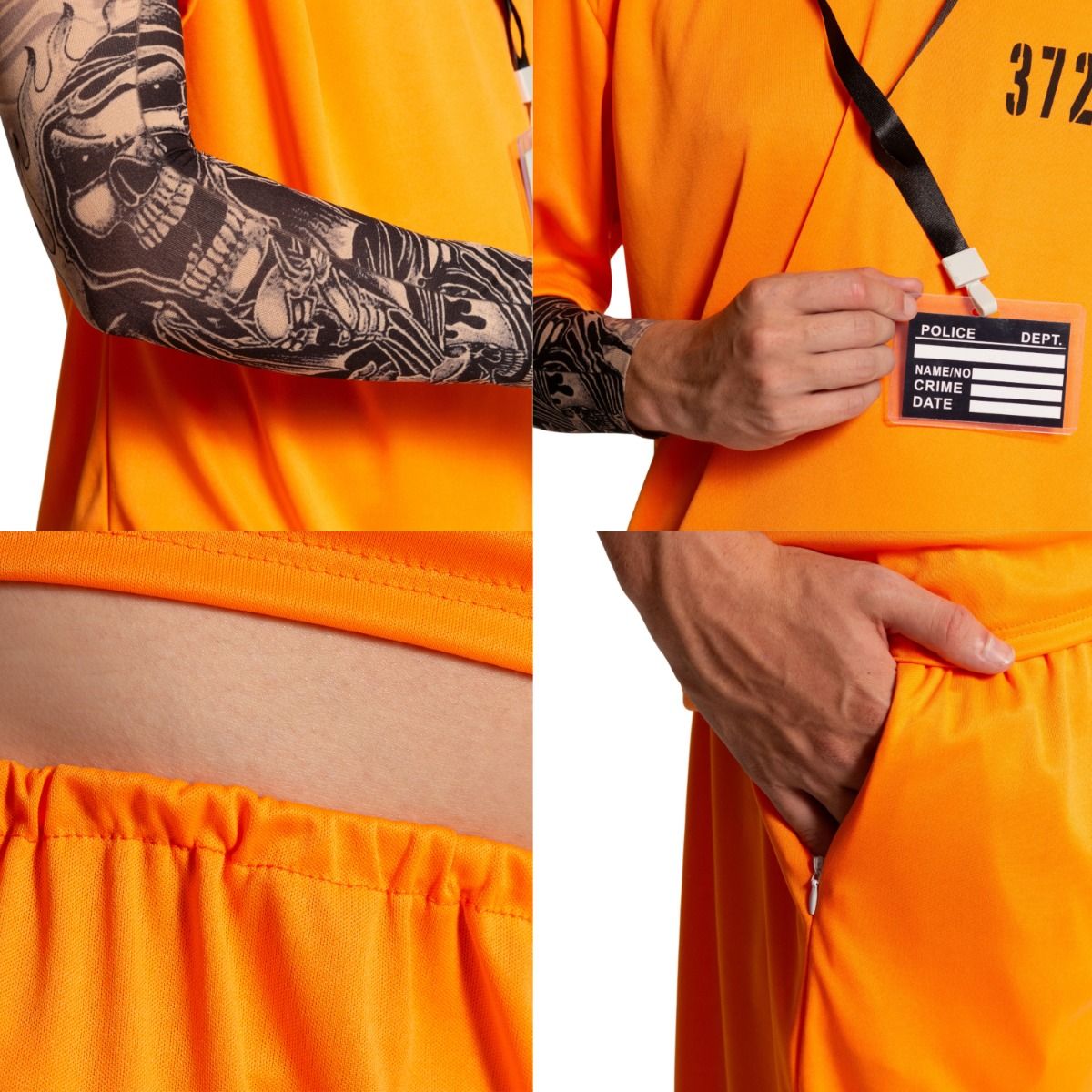 Ga voor een complete gevangenislook met dit oranje heren kostuum, perfect voor carnaval, themafeesten of foute party’s. De set bevat alles wat je nodig hebt om direct in character te gaan.