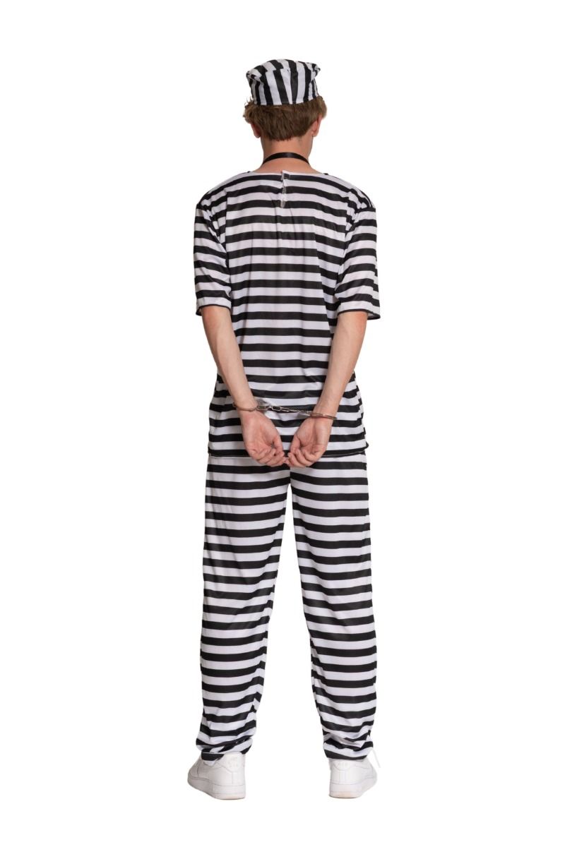 Ga voor de klassieke gevangenislook met dit zwart-wit gestreepte heren kostuum. Perfect voor carnaval, themafeesten, foute party’s of vrijgezellenavonden.
