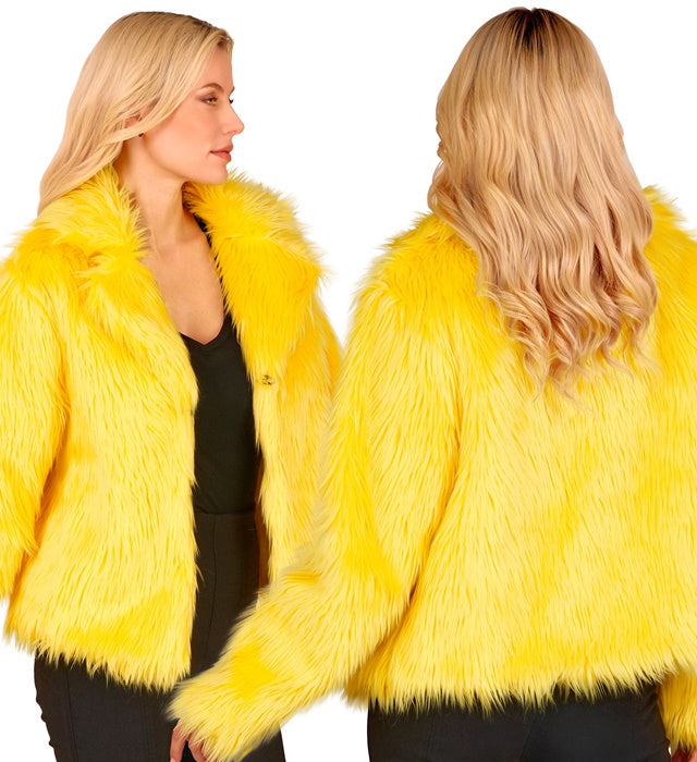 Deze pluche bontjas voor dames in een frisse gele kleur is een vrolijke eyecatcher voor elk feest. Perfect voor Carnaval, themafeesten, jaren 80/90-feesten of een foute party.