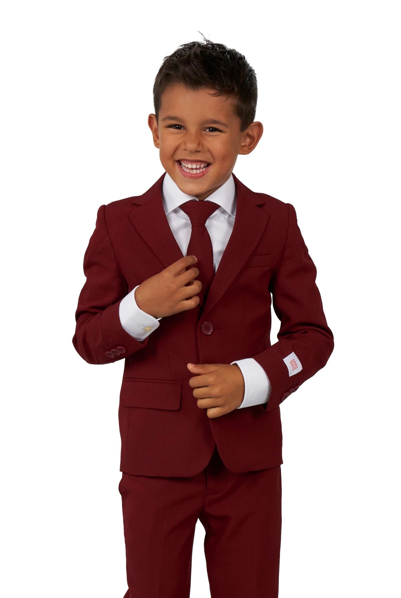 Als je op zoek bent naar nonchalante koelte voor het volgende pak van je kleine man, dan zal de Blazing Burgundy de klus klaren. De gedurfde en veelzijdige kleur maakt het een outfit die het hele jaar door gedragen kan worden. Een hete stijlvolle kijk op pakken voor kinderen nodig? Dit stevige bordeauxrode pak is alles wat je nodig hebt.