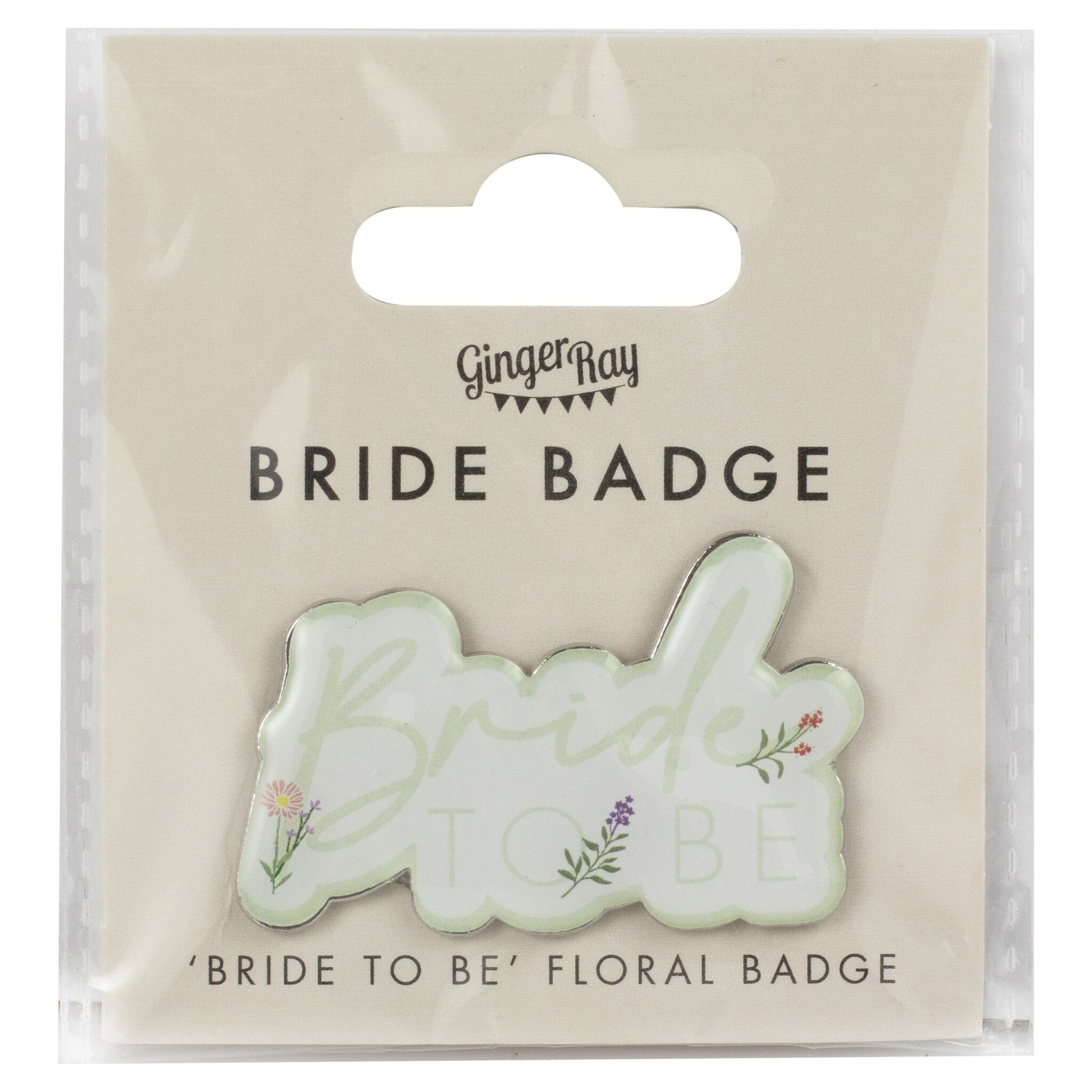 Zorg ervoor dat de bruid zich extra speciaal voelt met deze geëmailleerde 'Bride-to-Be'-badge met bloemen.