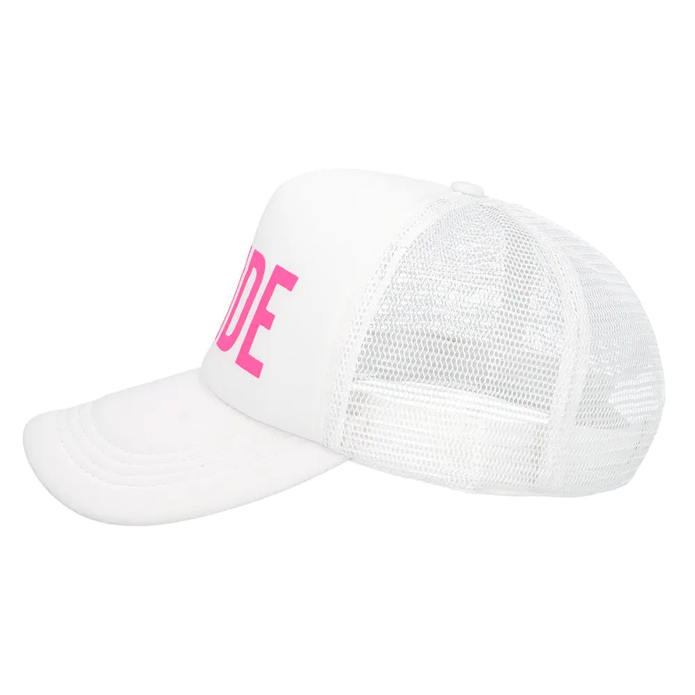 Deze leuke witte pet met de opdruk ""Bride"" in grote roze letters is perfect voor bruiden die hun speciale status willen benadrukken tijdens hun vrijgezellenfeest. Met zijn eigentijdse design is dit een leuke speelse accessoire om gelijk duidelijk te maken wie er binnenkort gaat trouwen!