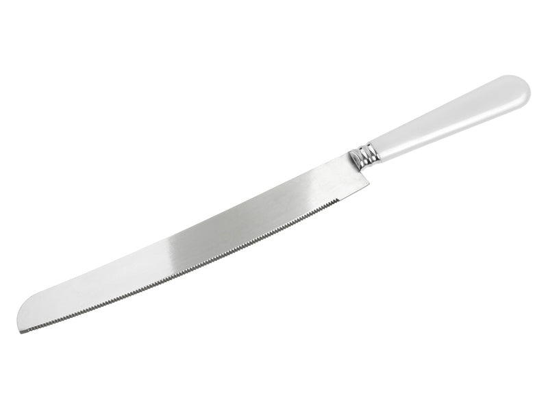 Taartmes en een server, totale meslengte 30,5 centimeter, serverlengte 24,5 centimeter, handgreeplengte 9 centimeter.