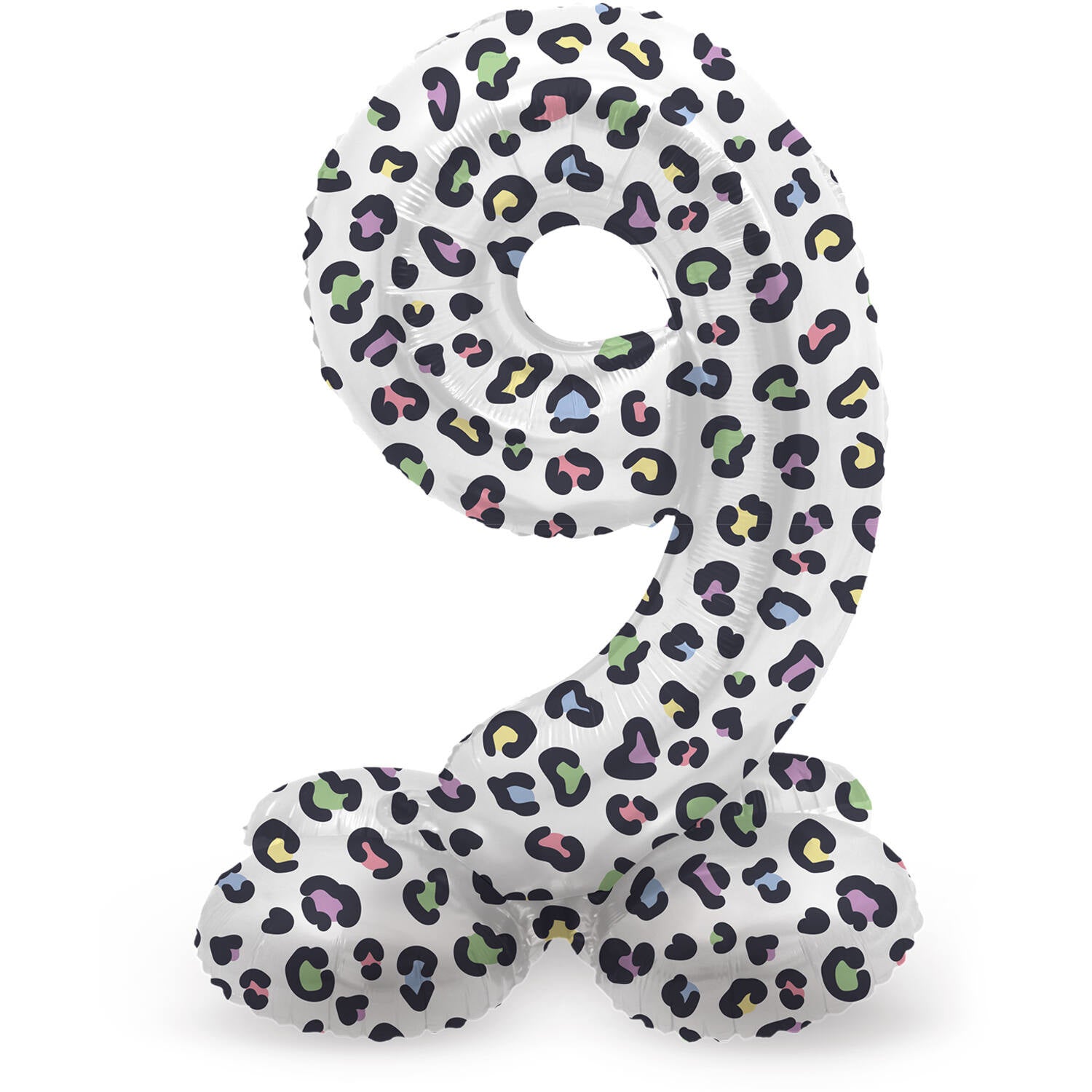 Cijfer Ballon 9 Jaar Panter Met Standaard Leeg 72cm