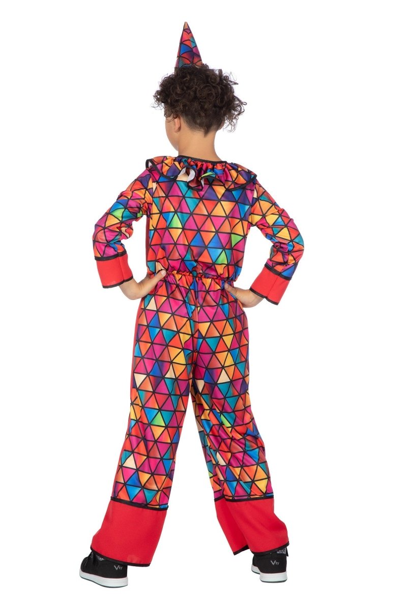 Leuke clownsoverall met bijpassende hoed voor jongens. Perfect om op te vallen tijdens carnaval, verkleedfeestjes of toneeloptredens.